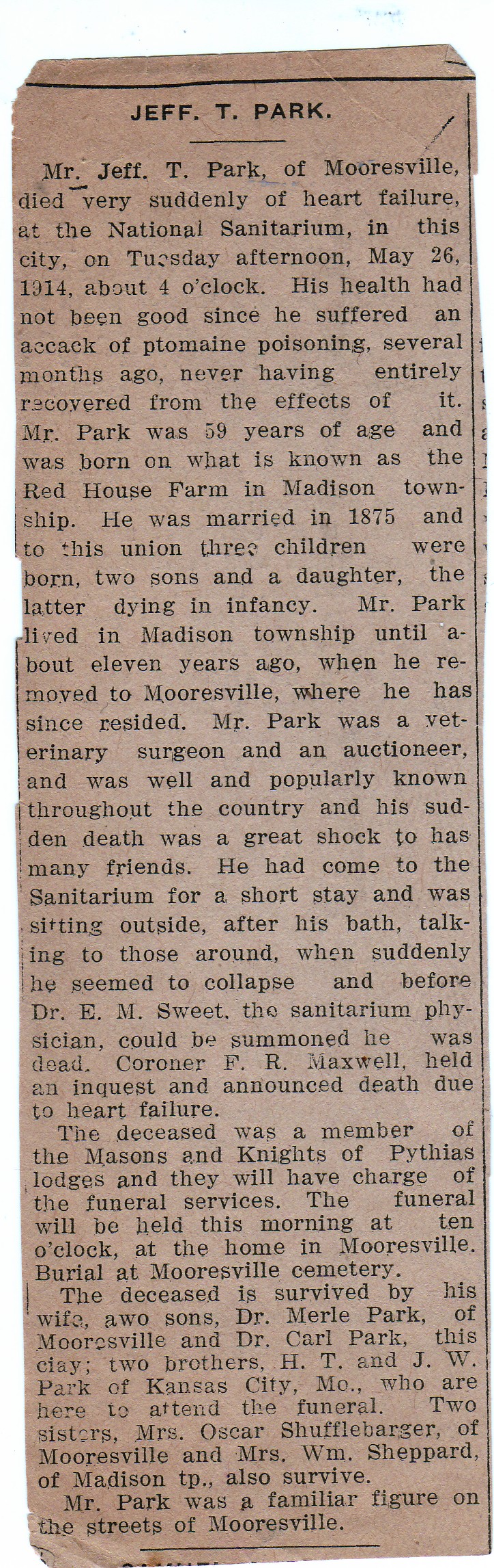 | Other | Buried in Park family plot, Mooresville Cemetery. |