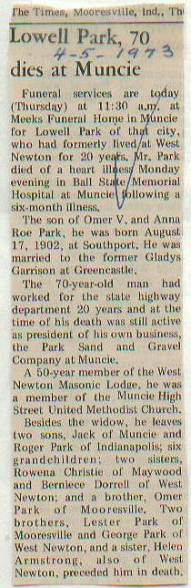 Survived By Wife; sons, Jack and Roger Park; sisters, Rowena Christie and Bernice Dorrell; brother, Omer Park.