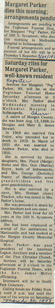 | Survived By | Daughters, Mrs. Floyd (Madge) Burns, Mrs. Don (Martha) Royer, and Mrs. George (Dorothy) Pearcy. |