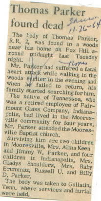 Survived By Children, Alma Keen, Jimmy W. Parker, Gladys Shoulders, Mrs. Ruby Brummett, Russell U., and Billy D. Parker.