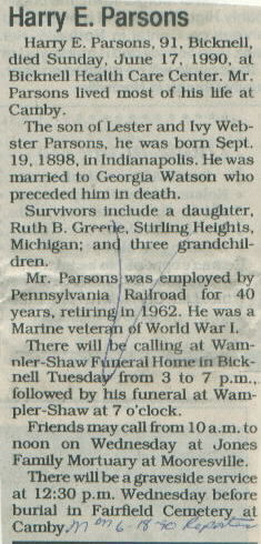 Other Age 91. Jones Family Mortuary. Graveside services and burial, Fairfield Friends church and cemetery. Worked for Penn. RR for 40 years. US Marine veteran, World War I. Lived most of his life at Camby. Died at Bicknell nursing home.