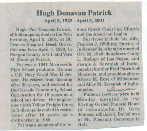 | Other | Parents: G. I. and Vera M. (Stanley) Patrick. U.S. Navy veteran of World War II. |
