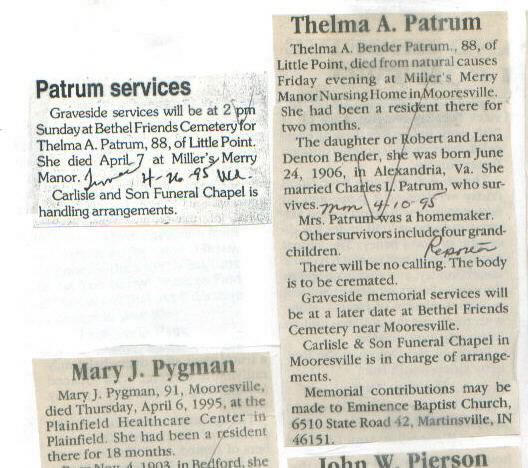Other Age 88. Carlisle funeral. Cremation. Graveside services at Bethel Friends Church cemetery. Died at Miller's Merry Manor; born in Alexandria, Va.