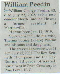 | Cemetery | Price Cemetery in Pine Level, N.C. |
