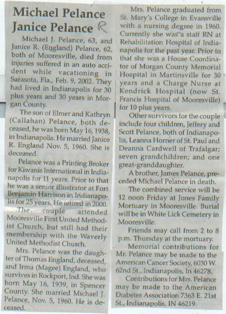 | Survived By | Mother, Irma (Magee) England; 4 children, Jeffery and Scott Pelance, Leanna Horner, and Deanna Cardwell; 7 grandchildren; one great-granddaughter. |