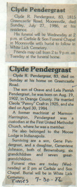 | Survived By | Son, Gene Pendergrast, and daughter, Genevieve Johnson, both of Brownsburg; 6 grandchildren; 7 great-grandchildren. |