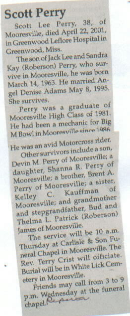 | Survived By | Spouse; parents, Jack Lee and Sandra Kay (Roberson) Perry; son, Devin M. Perry; daughter, Shanna R. Perry; brother, Brent A. Perry; sister, Kelley C. Kauffman. |