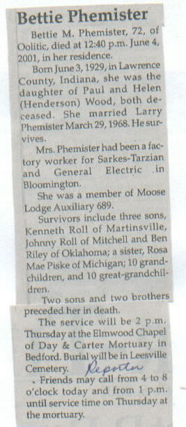 | Survived By | Spouse; sons, Kenneth and Johnny Roll, and Ben Riley; sister, Rosa Mae Piske; 10 grandchildren; 10 great-grandchildren. |