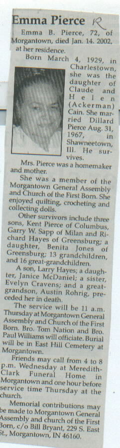 | Survived By | Spouse; 3 sons, Kent Pierce, Gary W. Sapp, and Richard Hayes; daughter, Benita Jones; 13 grandchildren; 16 great-grandchildren. |