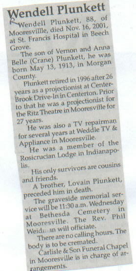 | Other | Preceded in death by parents, Vernon and Anna Belle (Crane) Plunkett; brother, Lovain Plunkett. |