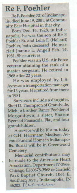 Other Age 72. Preceded in death by parents, Re F. Poehler, Sr. and Lelia F. (Hellard) Poehler. U.S. Air Force veteran.