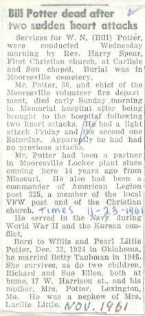 Survived By Wife; son, Richard Potter; daughter, Sue Ellen Potter; mother, Pearl Little Potter.
