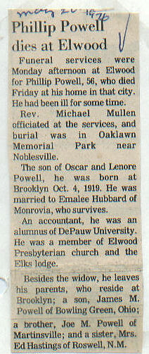 | Survived By | Wife; parents, Oscar and Lenore Powell; son, James M. Powell; brother, Joe Powell; sister, Mrs. Ed (Emmylou) Hastings. |