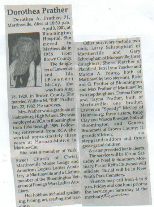Other Preceded in death by parents, Lawrence and Ida (Fleener) McCoy; one sister.