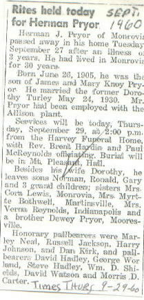 | Survived By | Wife; sons, Norman, Ronald, and Gary Pryor; sister, Mrs. Cora Lewis. |