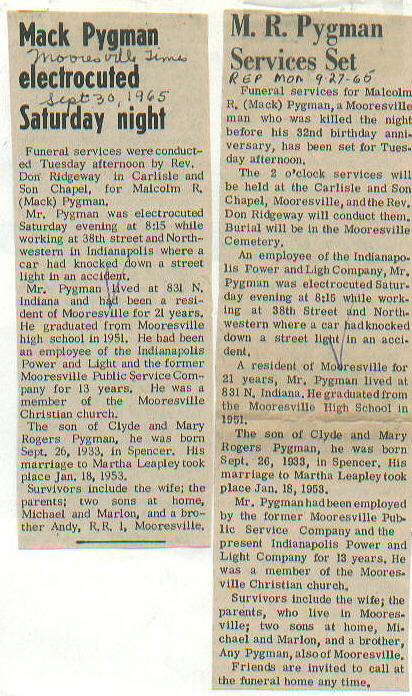 | Other | Age 32. Worked for Indianapolis Power & Light; was electrocuted on the job. |