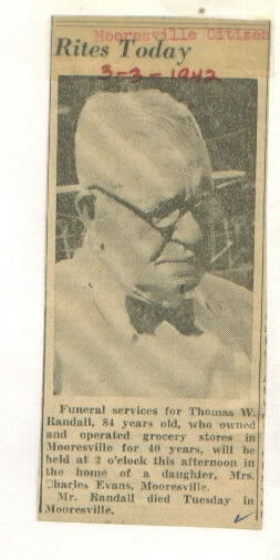 | Survived By | Son, Frank Randall; daughters, Mrs. Charles (Bessie) Evans and Mrs. William (Alice) Haase; brother, Louis Randall. |