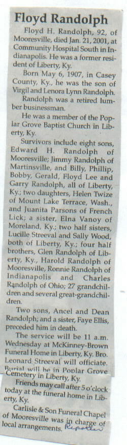 Other Preceded in death by parents, Virgil and Lenora Lynn Randolph; sons, Ancel and Dean Randolph; sister, Faye Ellis.