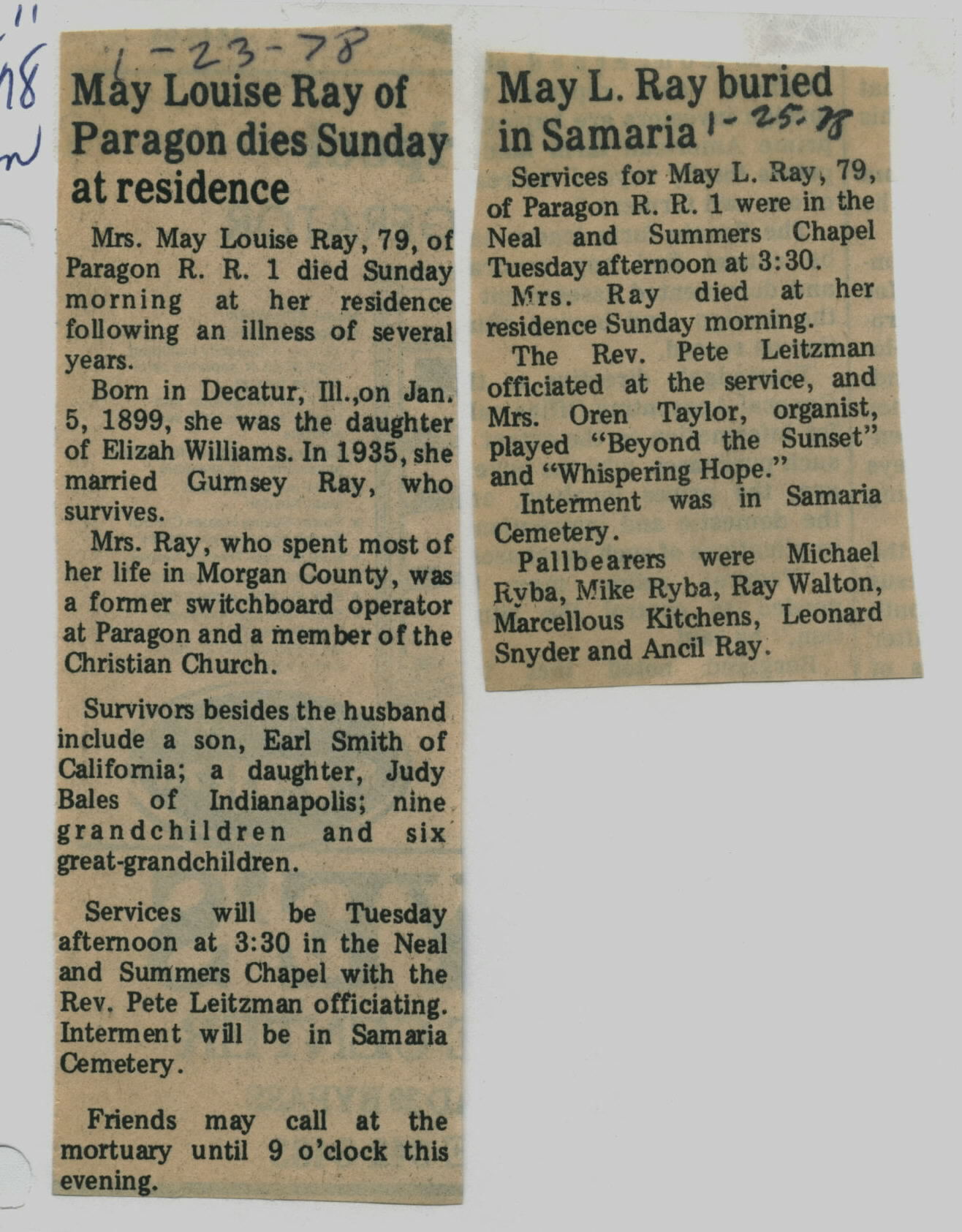 | Obituary Source | Martinsville Reporter, Jan. 23, 1978 |
