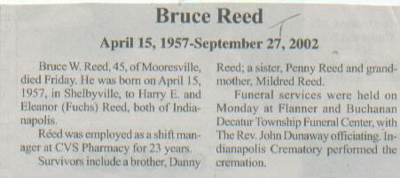 | Survived By | Parents, Harry E. and Eleanor (Fuchs) Reed; brother, Danny Reed; sister, Penny Reed; grandmother, Mildred Reed. |
