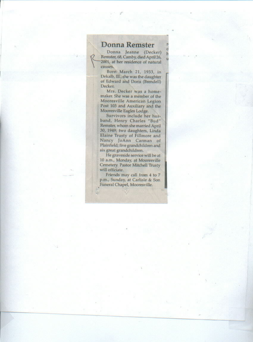 | Other | Parents: Edward and Doris (Brendell) Decker. |