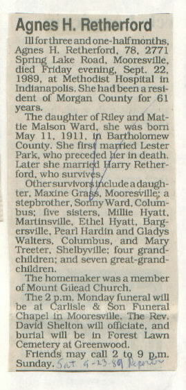 | Obituary Source | Martinsville Reporter, Sept. 23, 1989 |