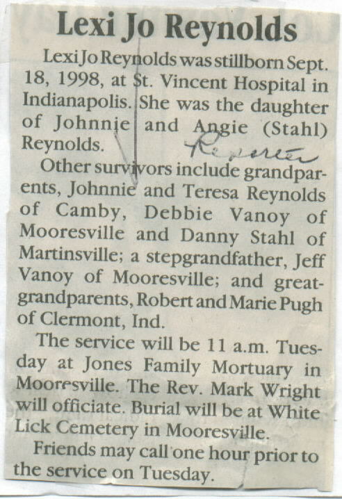 | Obituary Source | Mooresville Times, Sept. 23, 1998 |