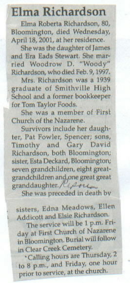 | Survived By | Daughter, Pat Fowler; sons, Timothy and Gary David Richardson; sister, Esta Deckard; 7 grandchildren; 8 great-grandchildren; 1 great-great-granddaughter. |