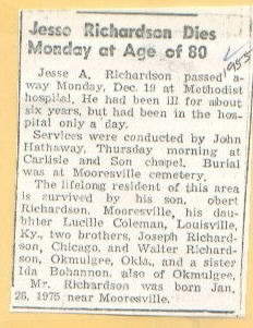 | Obituary Source | Mooresville Times, Dec. 22, 1955 |
