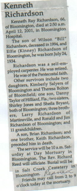 | Other | Preceded in death by father, Wilson Richardson; son, Brian Richardson; brother, Keith Richardson. |