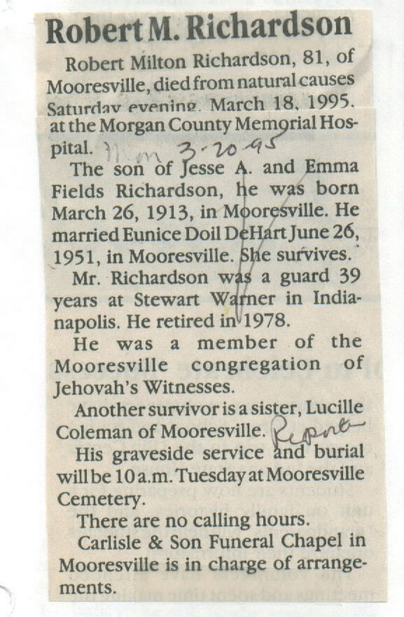 | Obituary Source | Martinsville Reporter, March 20, 1995 |