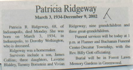 | Survived By | Son, James Collins; 3 daughters, Laverne Blakley, Tammy Bornstein, and Vivian Ridgeway; 9 grandchildren; 3 great-grandchildren. |