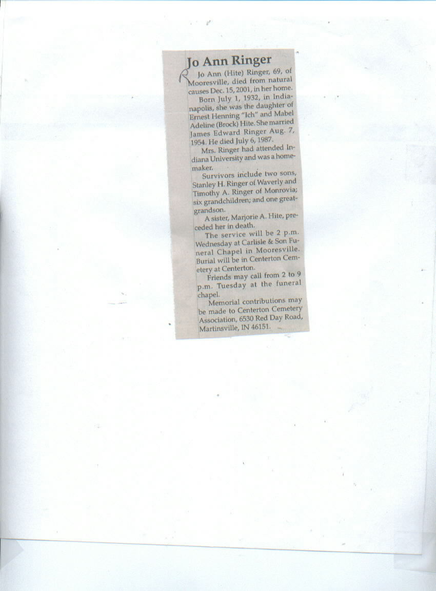 Other Preceded in death by spouse; parents, Ernest Henning and Mabel Adeline (Brock) Hite; sister, Marjorie A. Hite.