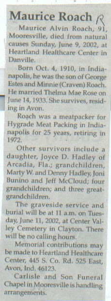 | Other | Parents: George Estes and Minnie (Craven) Roach. |