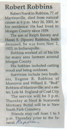 | Other | Preceded in death by parents, Ralph Emory and Hazel S. (Spoon) Robbins. |