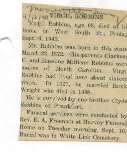 | Survived By | Brother, Clyde Robbins of Frankfort. |