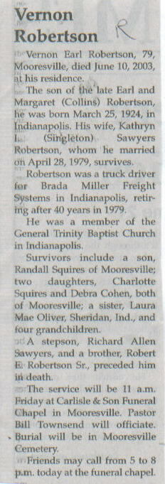 | Other | Son of the late Earl and Margaret (Collins) Robertson, he was born in Indianapolis. |