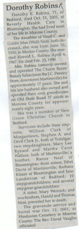| Other | Preceded in death by spouse; parents, Virgil C. and Goldie Mae (Wall) Neal; sister, Mary Wenrich; brothers, Harold and Thomas Neal. |