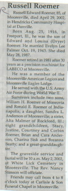 | Other | Age 86. Veteran U.S. Army Air Force, WW II. Son of Edward and Louisa (Dryer) Roemer. |