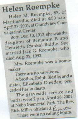 Other Preceded in death by spouse; parents, Benjamin P. and Henrietta (Yanka) Biddle; brother, Ralph Biddle; sister, Elizabeth Dowden.