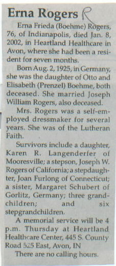 Survived By Daughter, Karen R. Langenderfer; stepson, Joseph W. Rogers; stepdaughter, Joan Furlong; sister, Margaret Schubert; 3 grandchildren; 6 stepgrandchildren.