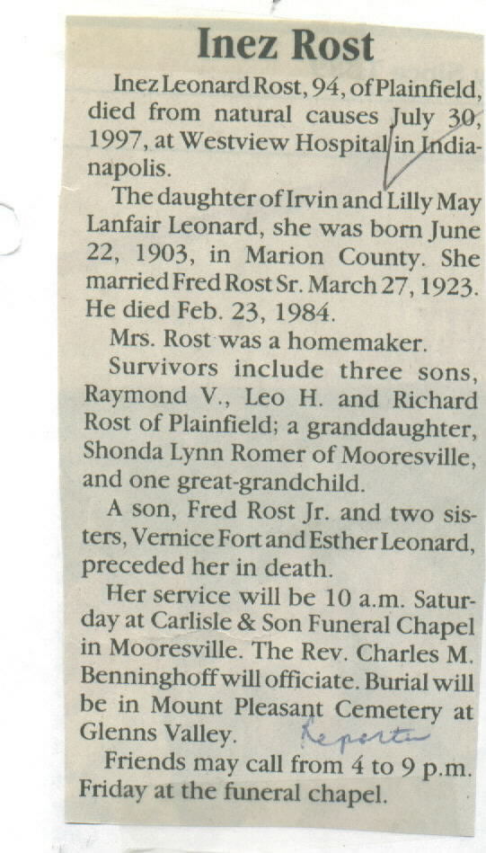 | Survived By | Sons, Raymond V., Leo H., and Richard Rost. |
