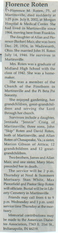 Other Daughter of Allan and Florence (Barker) Mair. Two brothers, James and Allan Mair, and one sister, Mary Mair, preceded her in death.