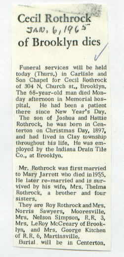 | Survived By | Wife; brother, Roy Rothrock; sisters, Mrs. Norris Sawyers, Mrs. Nelson Simpson, Mrs. LeRoy McCreary, and Mrs. George Kitchen. |