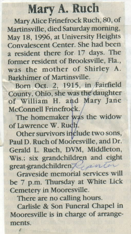 | Survived By | Sons, Paul D. and Dr. Gerald L. Ruch; daughter, Shirley A. Barkhimer. |