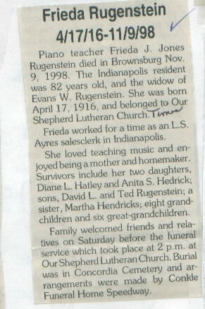 Survived By 2 daughters, Diane L. Hatley and Anita S. Hedrick; sons, David L. and Ted Rugenstein; sister; 8 grandchildren.