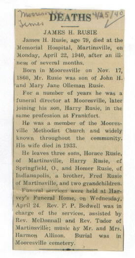 | Obituary Source | Mooresville Times, April 25, 1940 |
