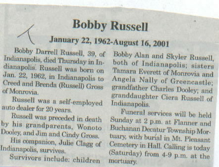 Survived By Children, Bobby Alan and Skyler Russell; sisters, Tamara Everett and Angela Nally; grandfather; 1 granddaughter.