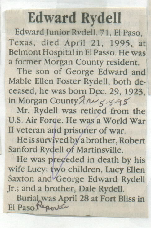 | Other | Age 71. Retired US Air Force; veteran WW II; Prisoner of War. Buried at Ft. Bliss in El Paso, Texas. |