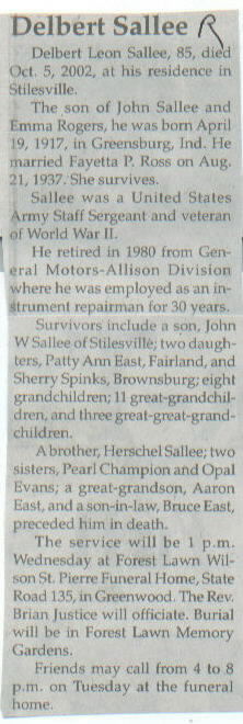 Survived By Widow; son, John W. Sallee; 2 daughters, Patty Ann East and Sherry Spinks; 8 grandchildren; 11 great-grandchildren; 3 great-great-grandchildren.